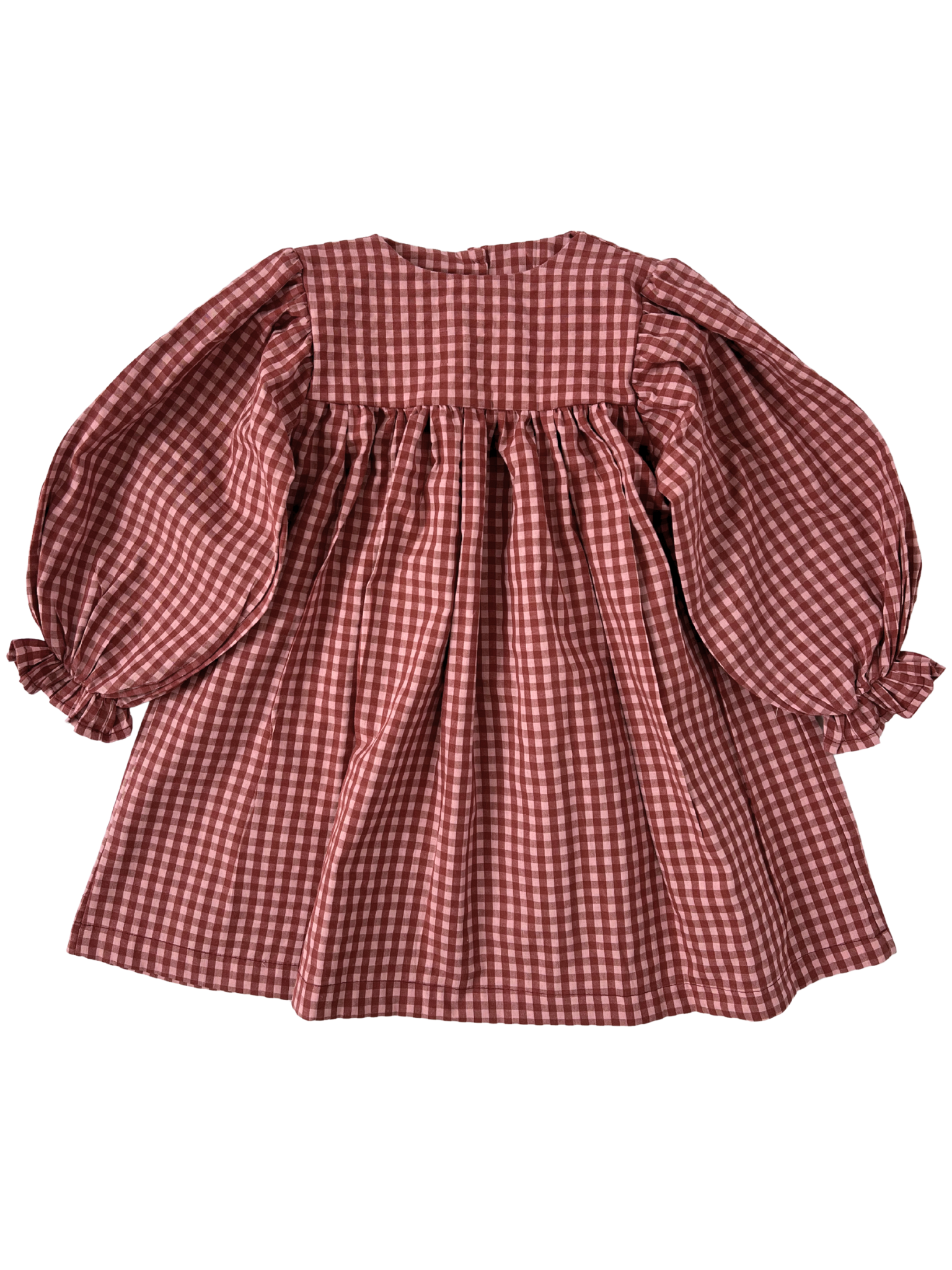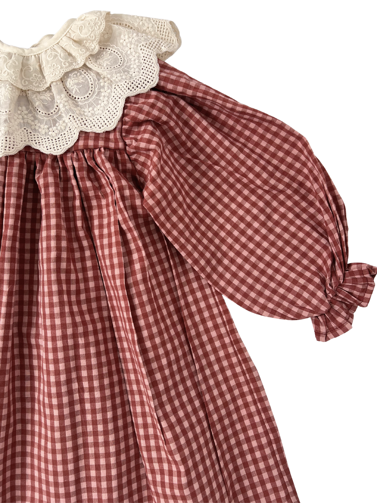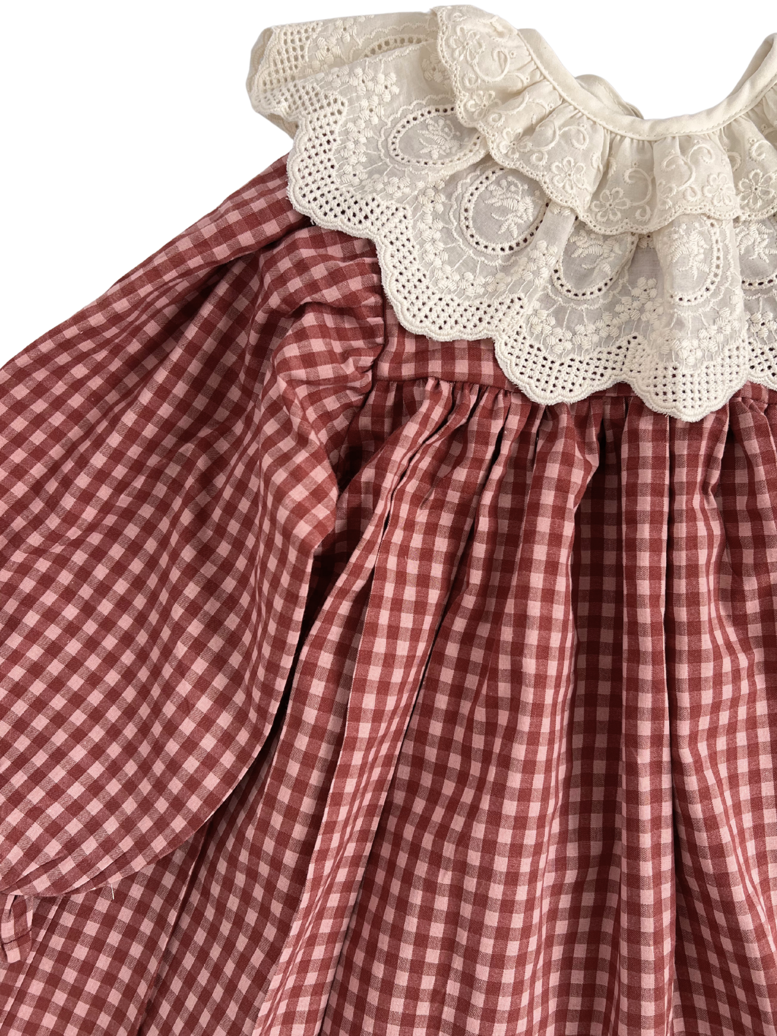 Bawełniana sukienka w kratę z koronkowym kołnierzem