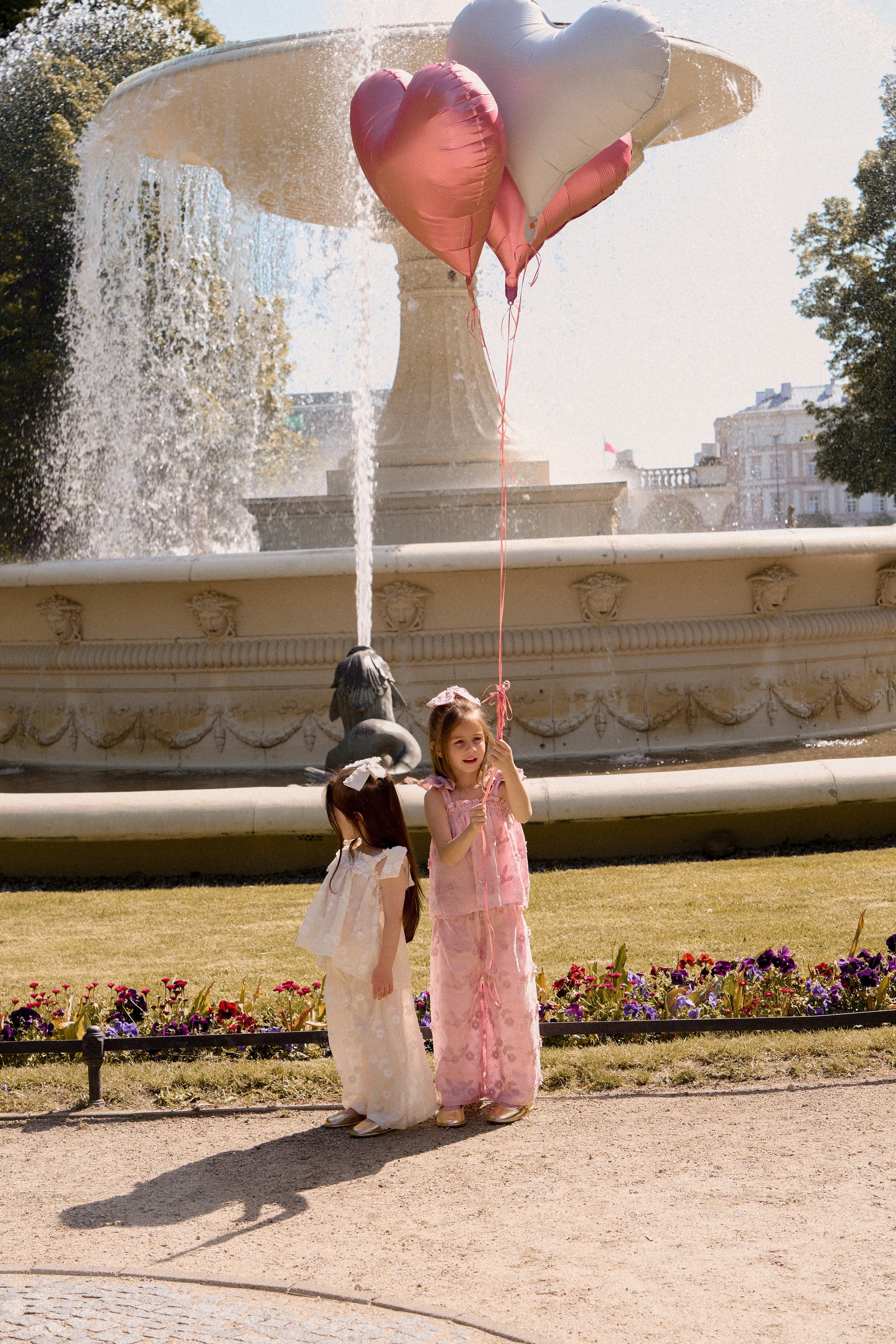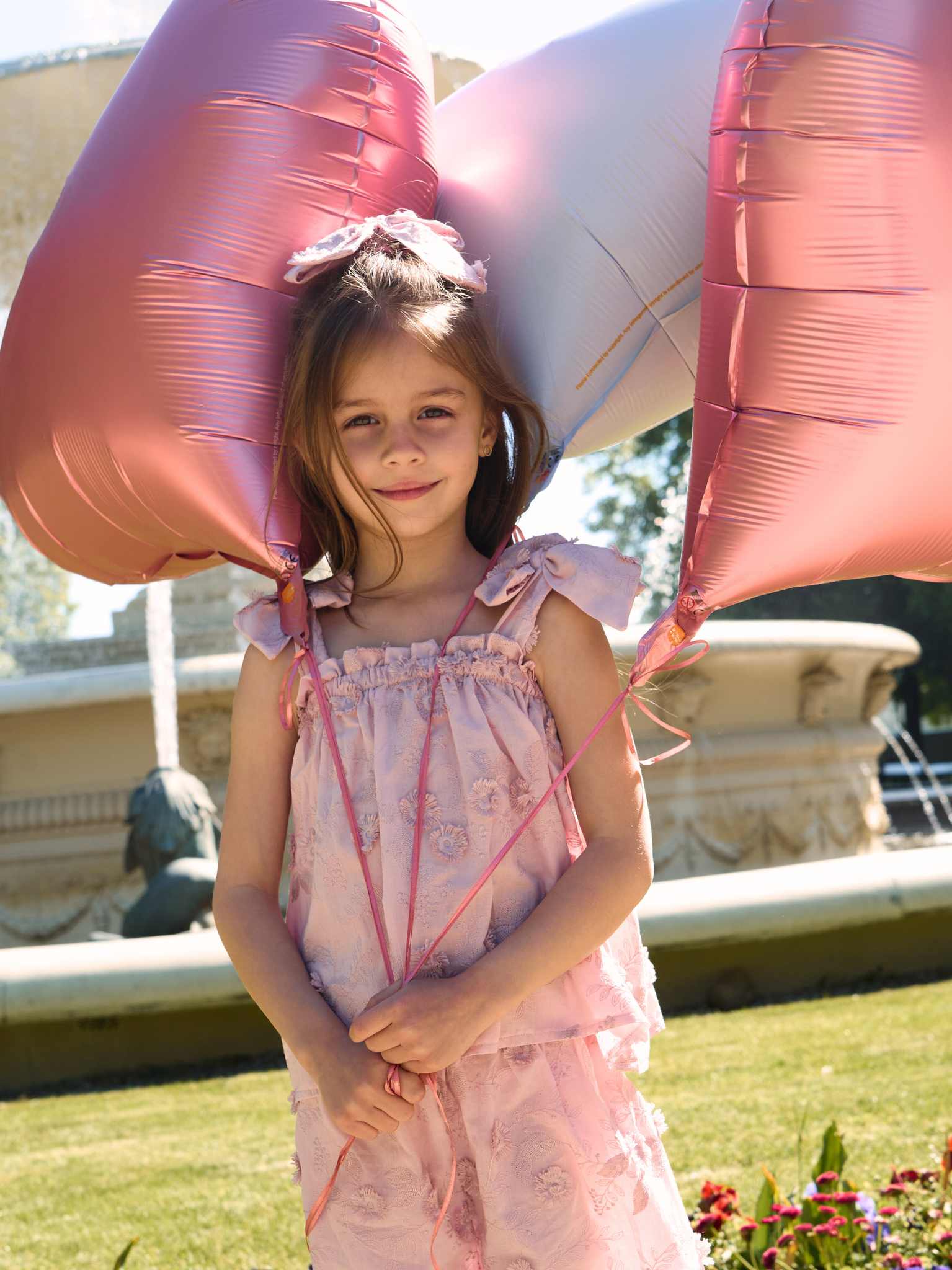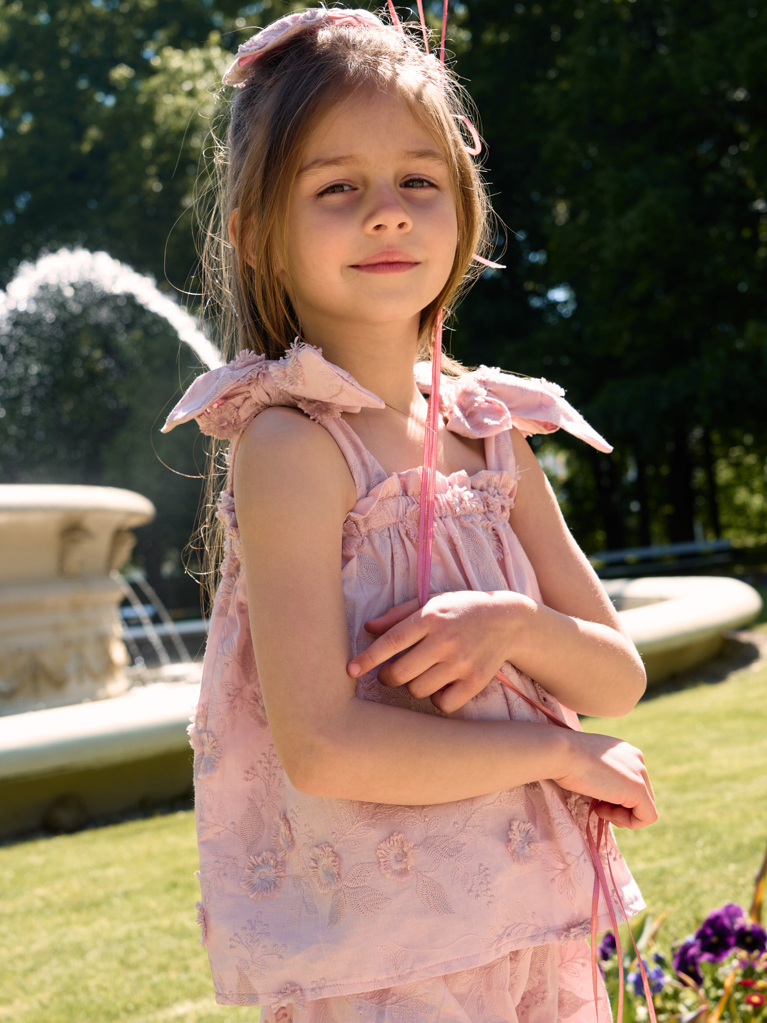 Bawełniana bluzka z kokardkami z wzorem kwiatów 3d.