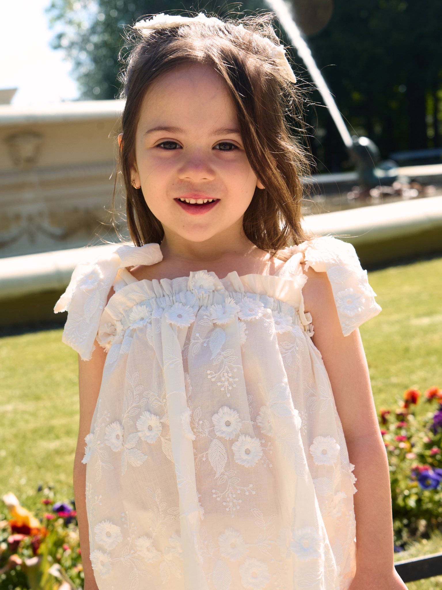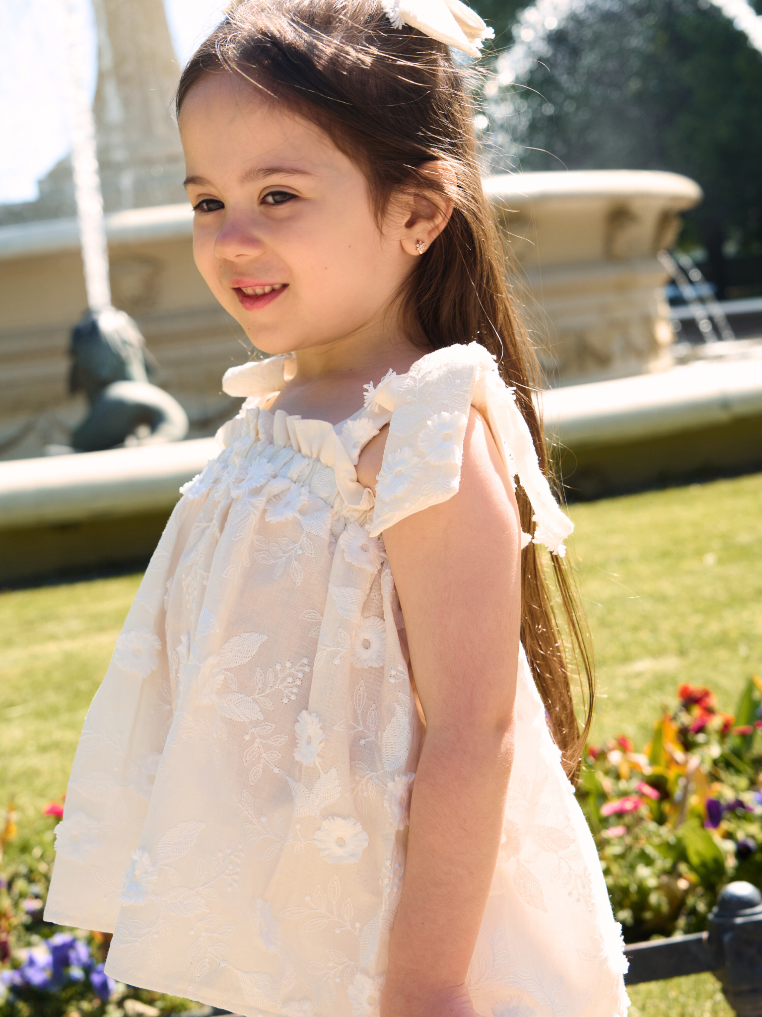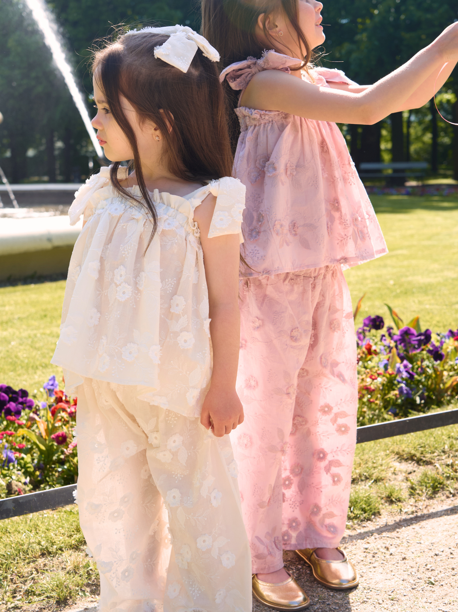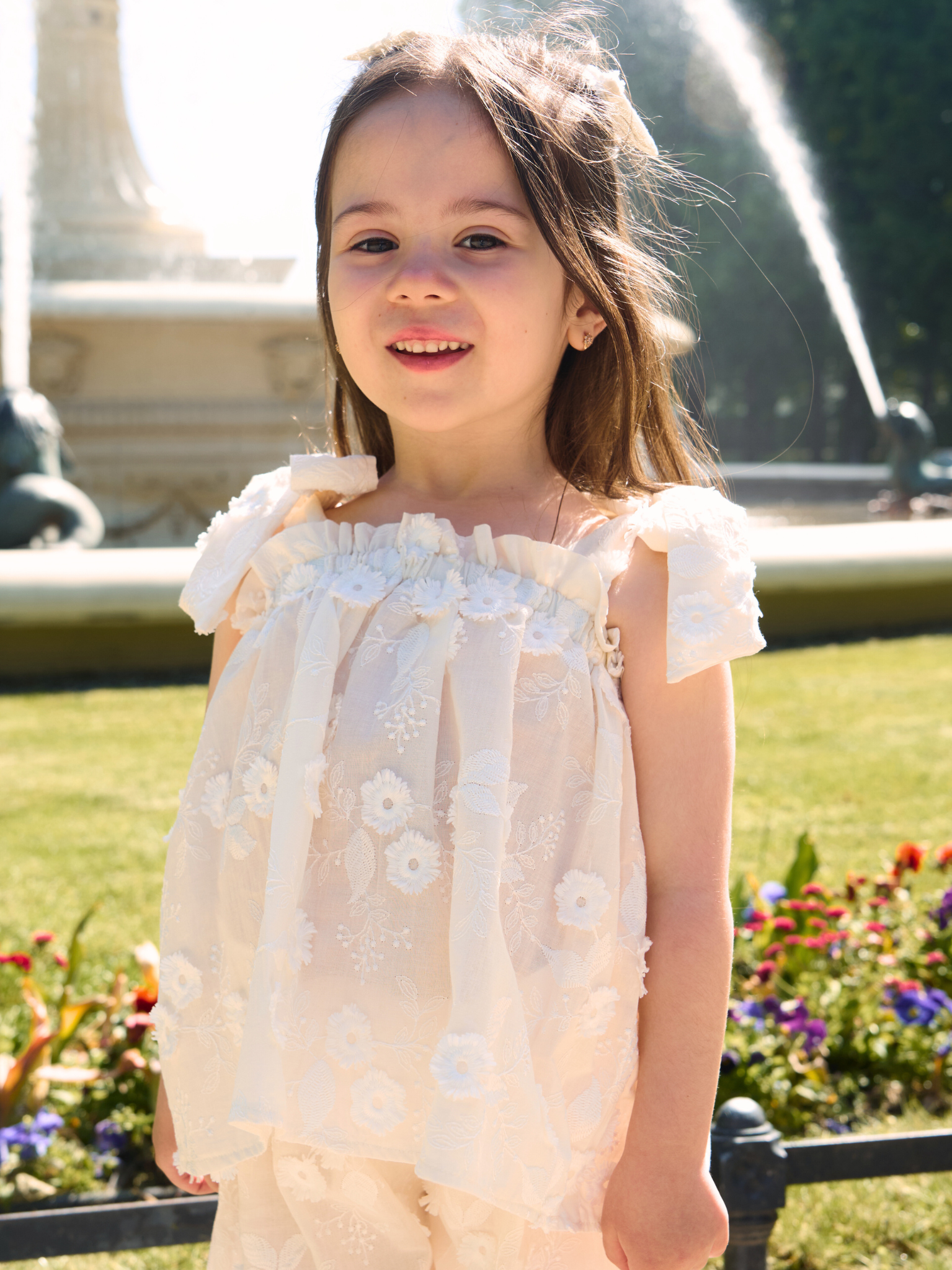 Bawełniana bluzka z kokardkami z wzorem kwiatów 3d.