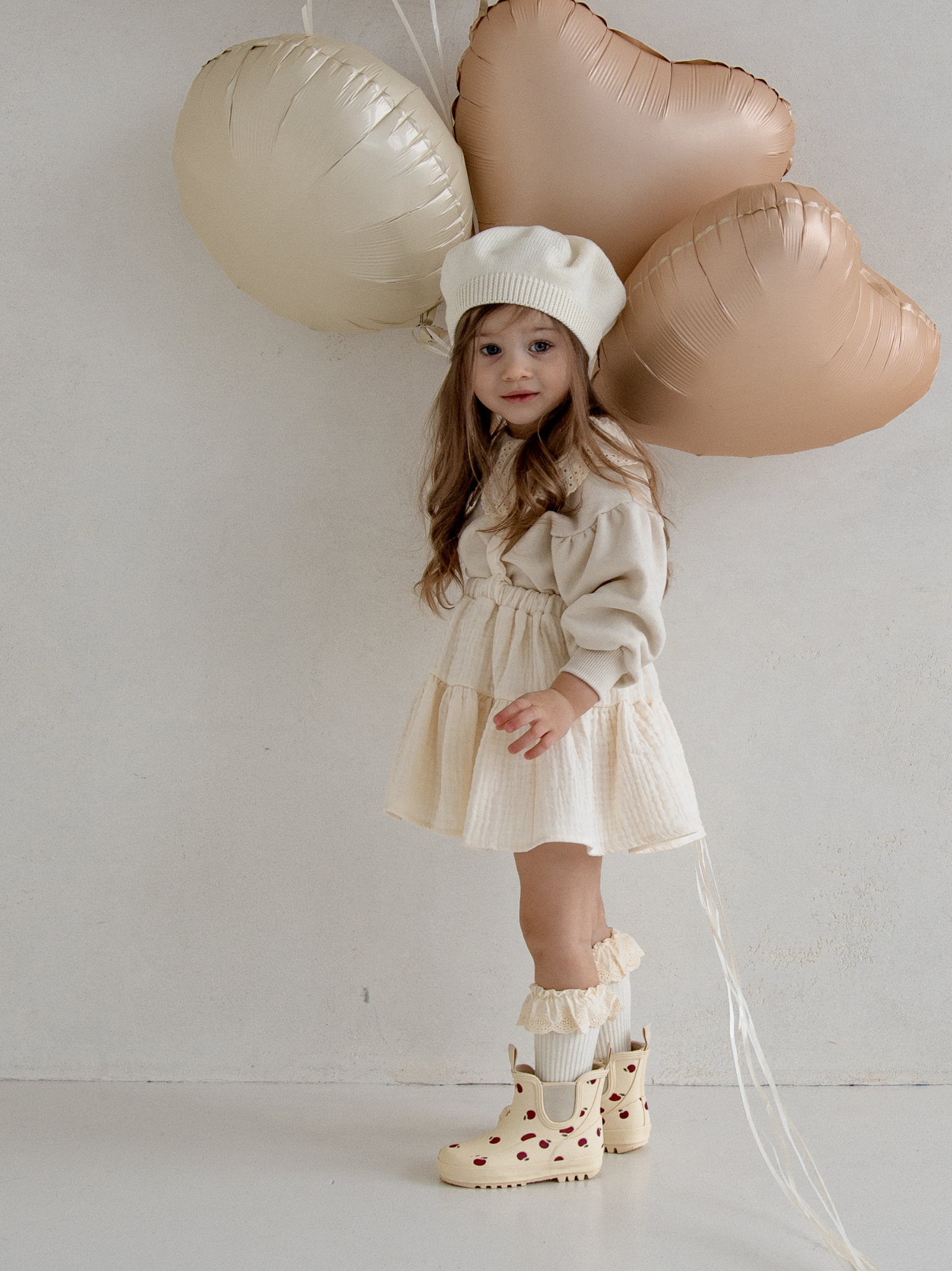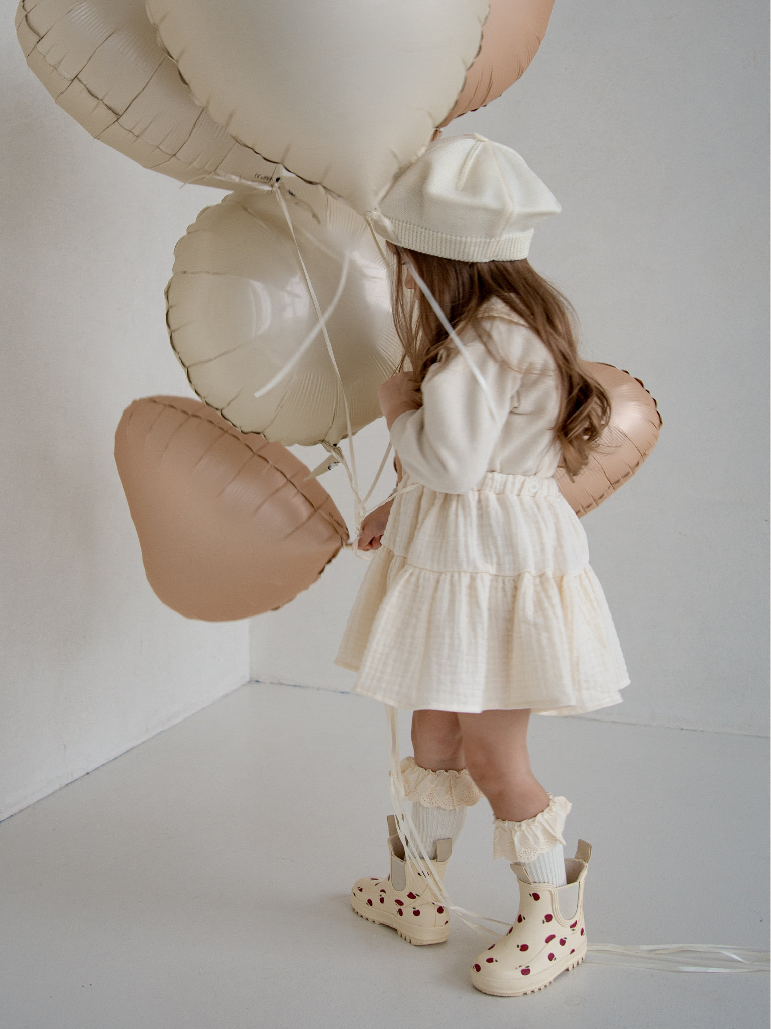 Komplet bluzy z haftowanym kołnierzykiem, spódnicy na szelkach i opaski. Kolor kremowy. Zestaw taniej o 59zł
