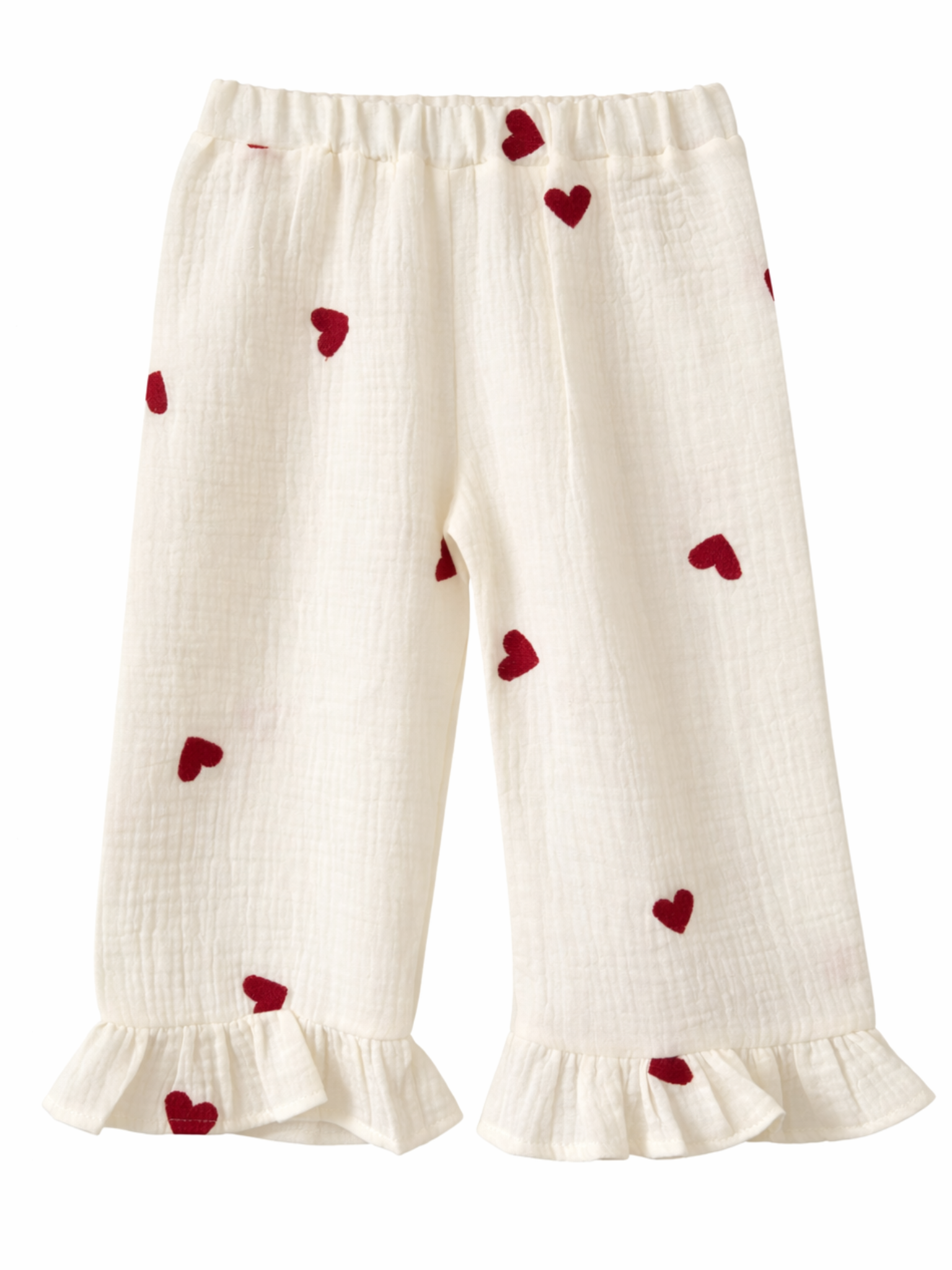 Spodnie kuloty z haftowanego muślinu z kieszeniami.