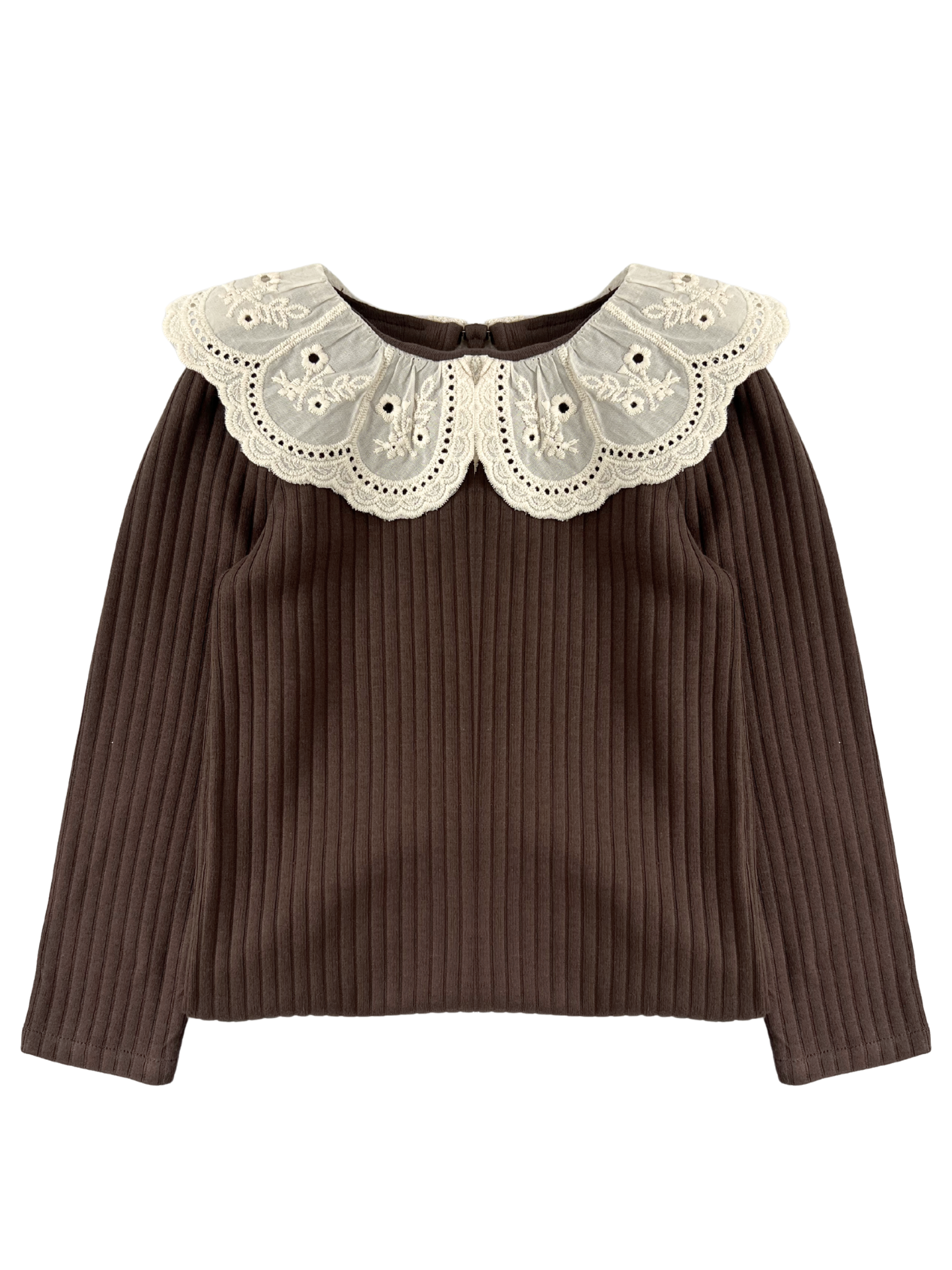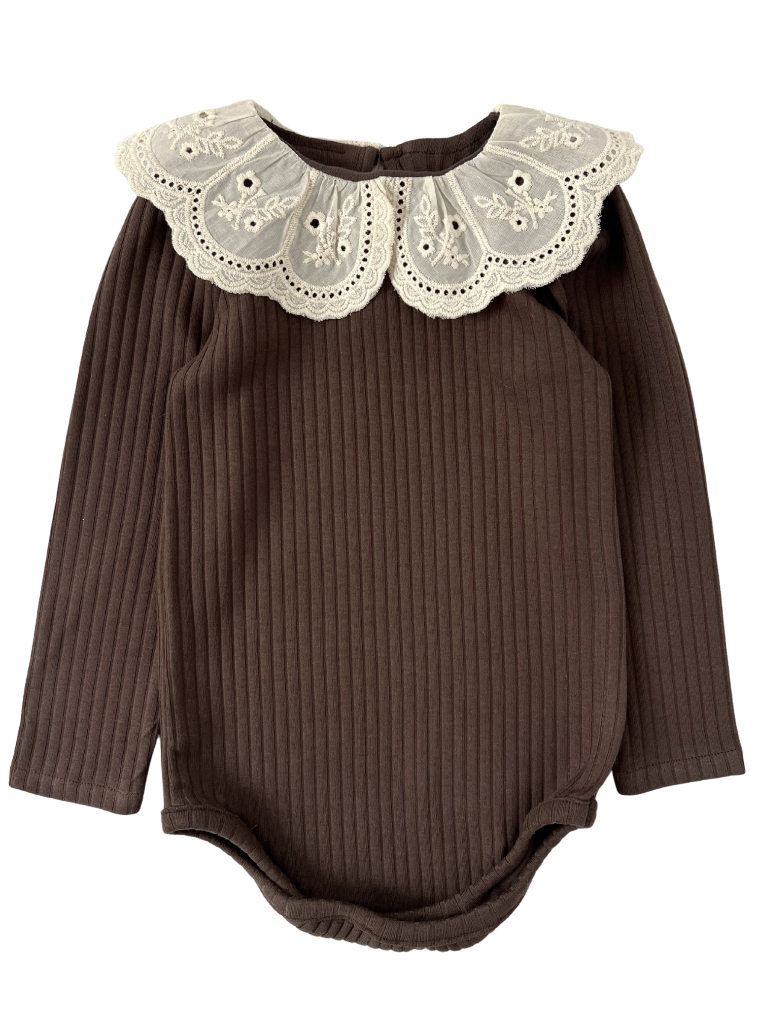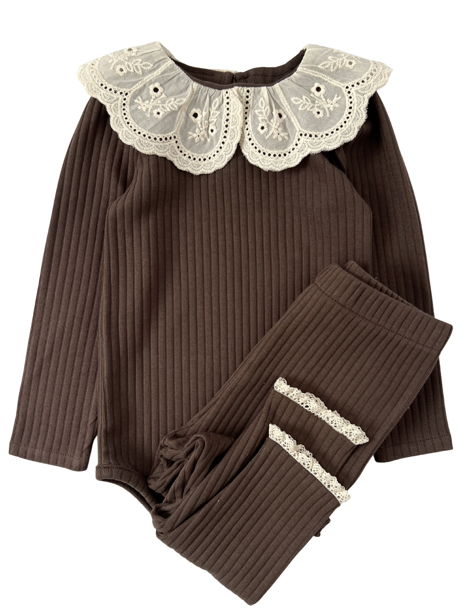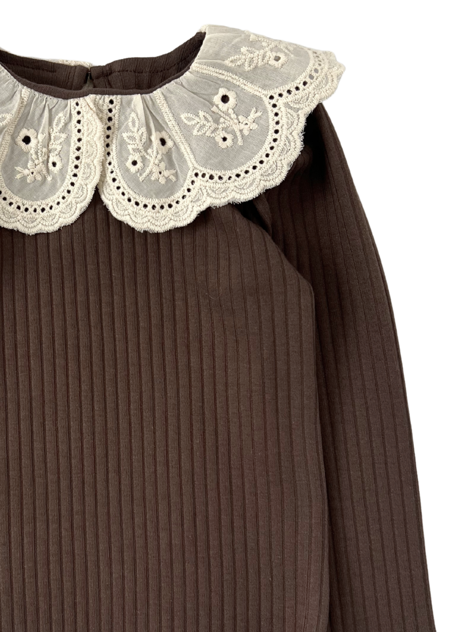 Prążkowane body/bluzka z koronkowym kołnierzykiem - brązowe