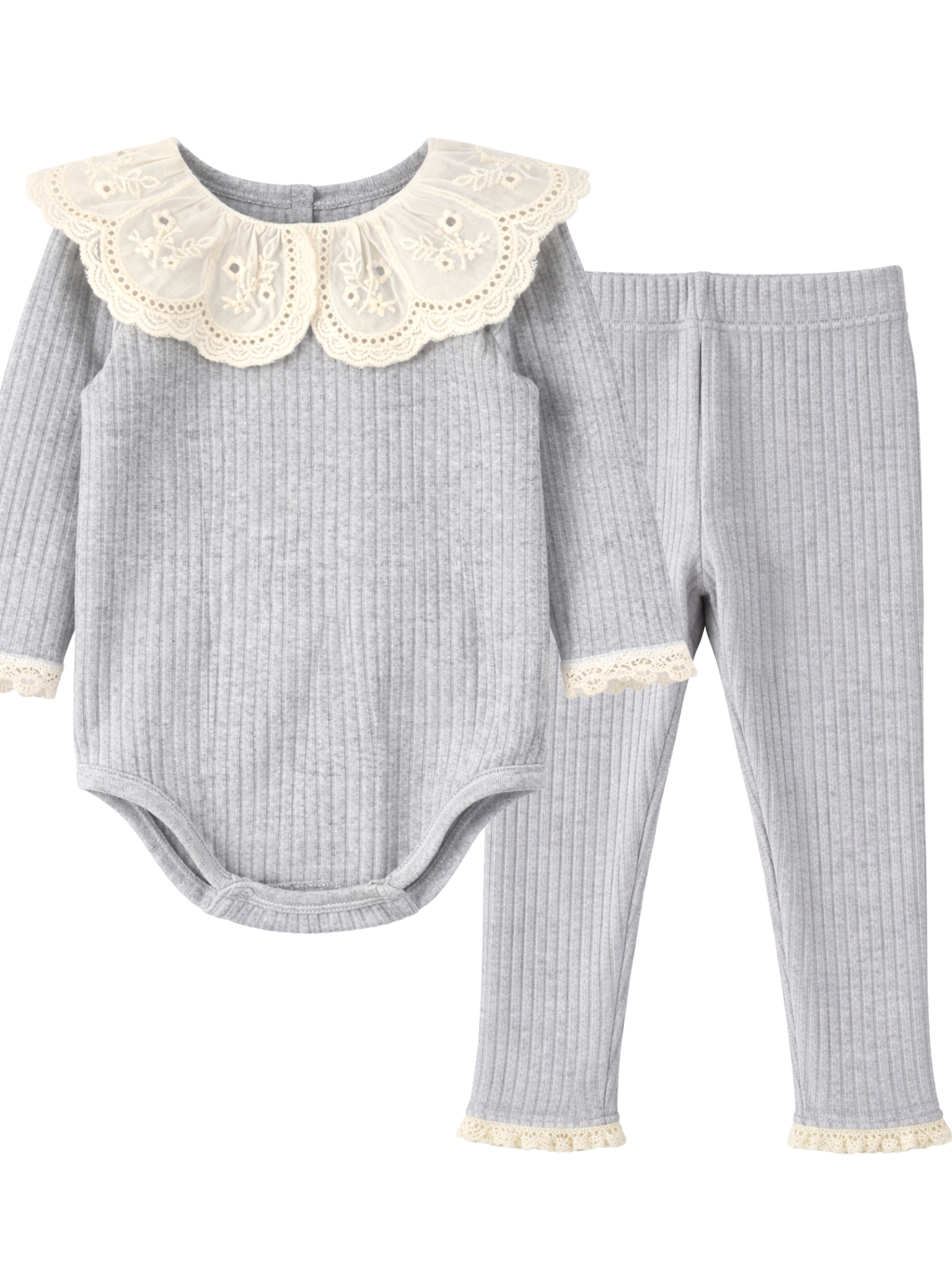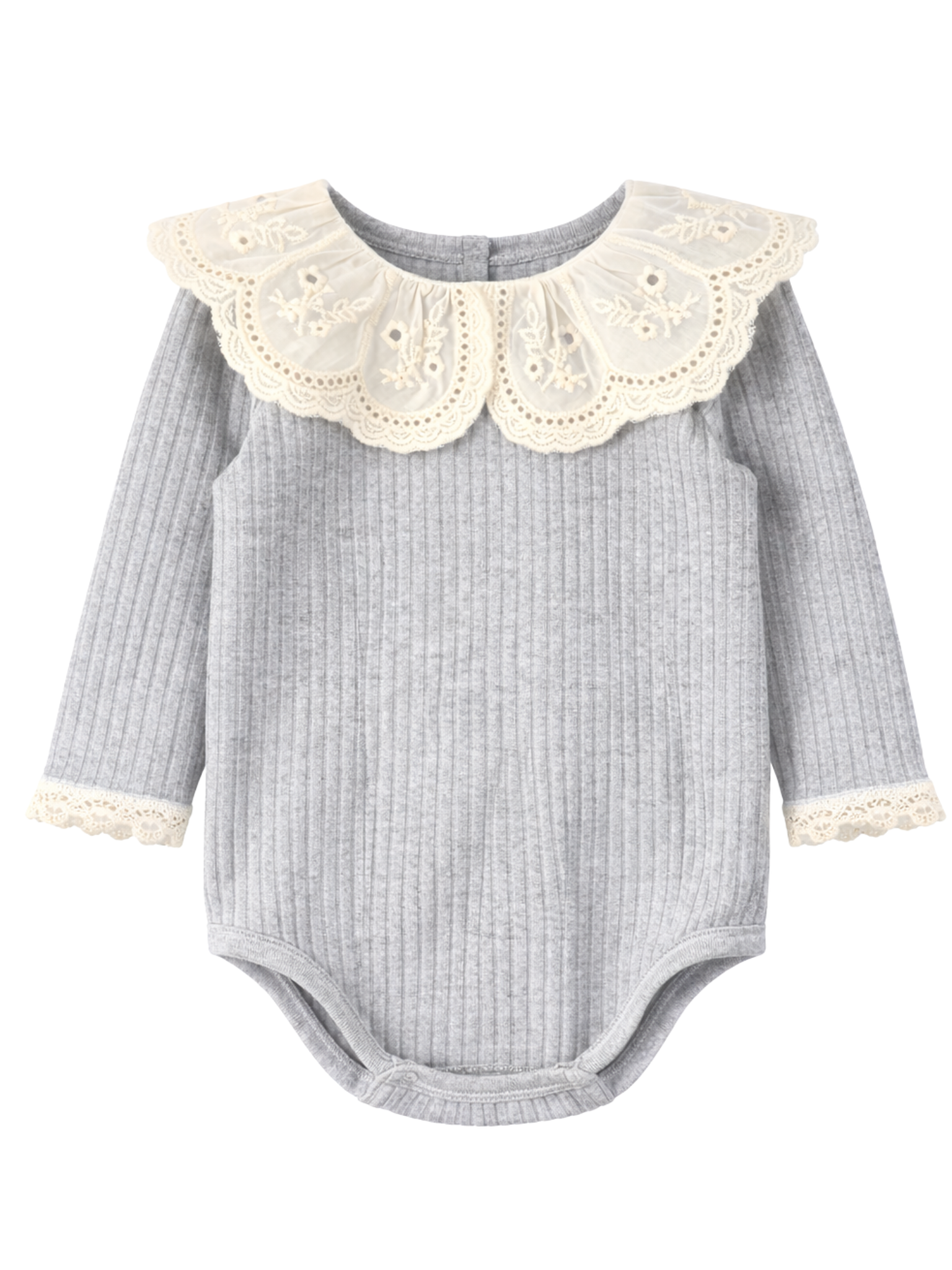 Prążkowane body/bluzka z koronkowym kołnierzykiem - szary melanż