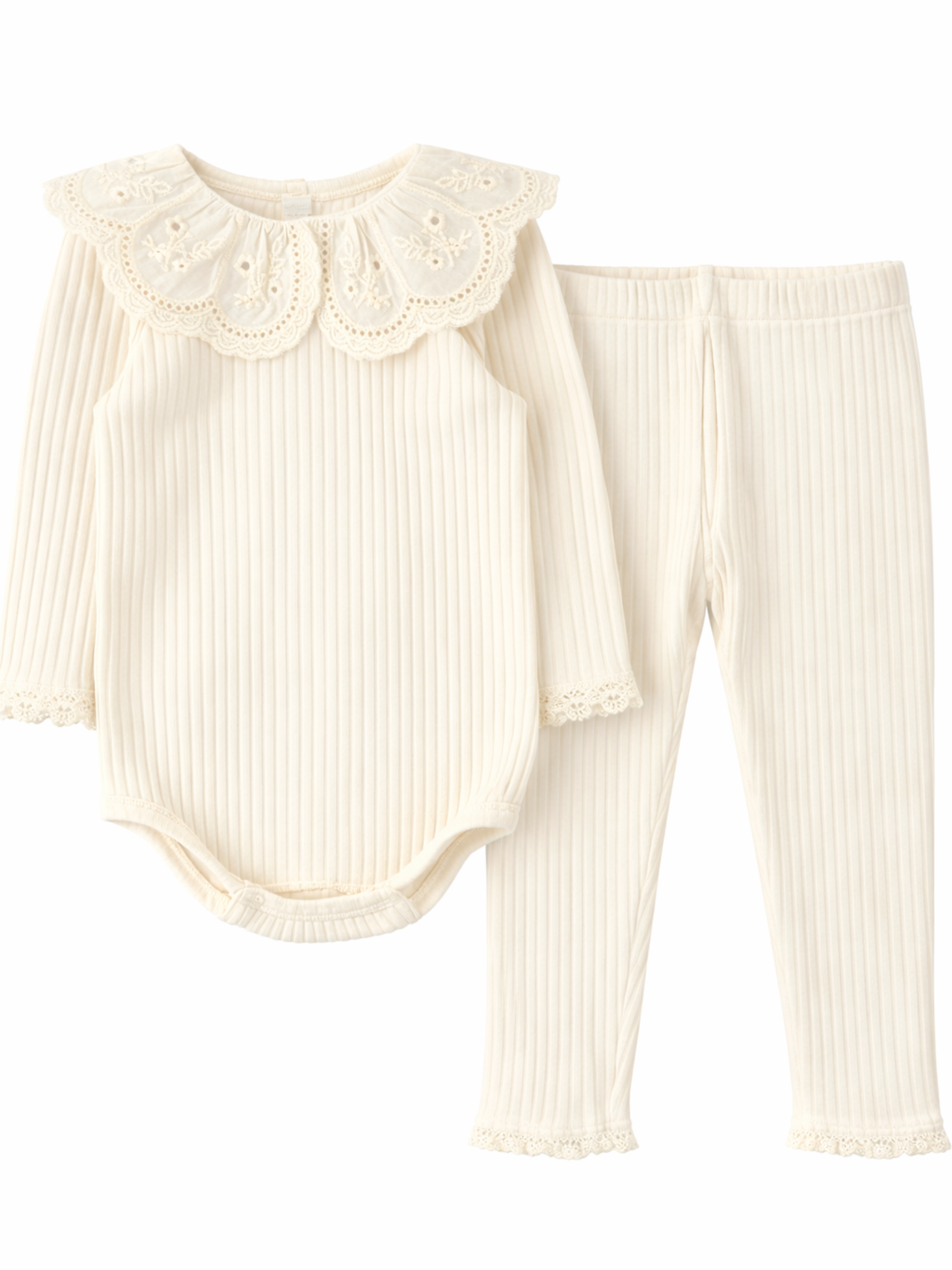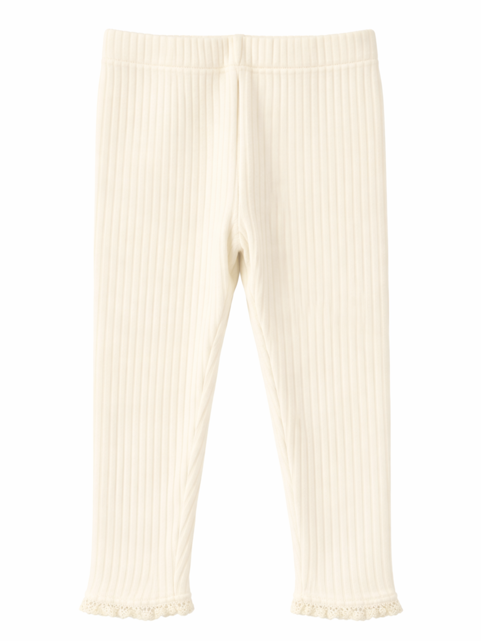 Prążkowane legginsy z koronką -kremowe