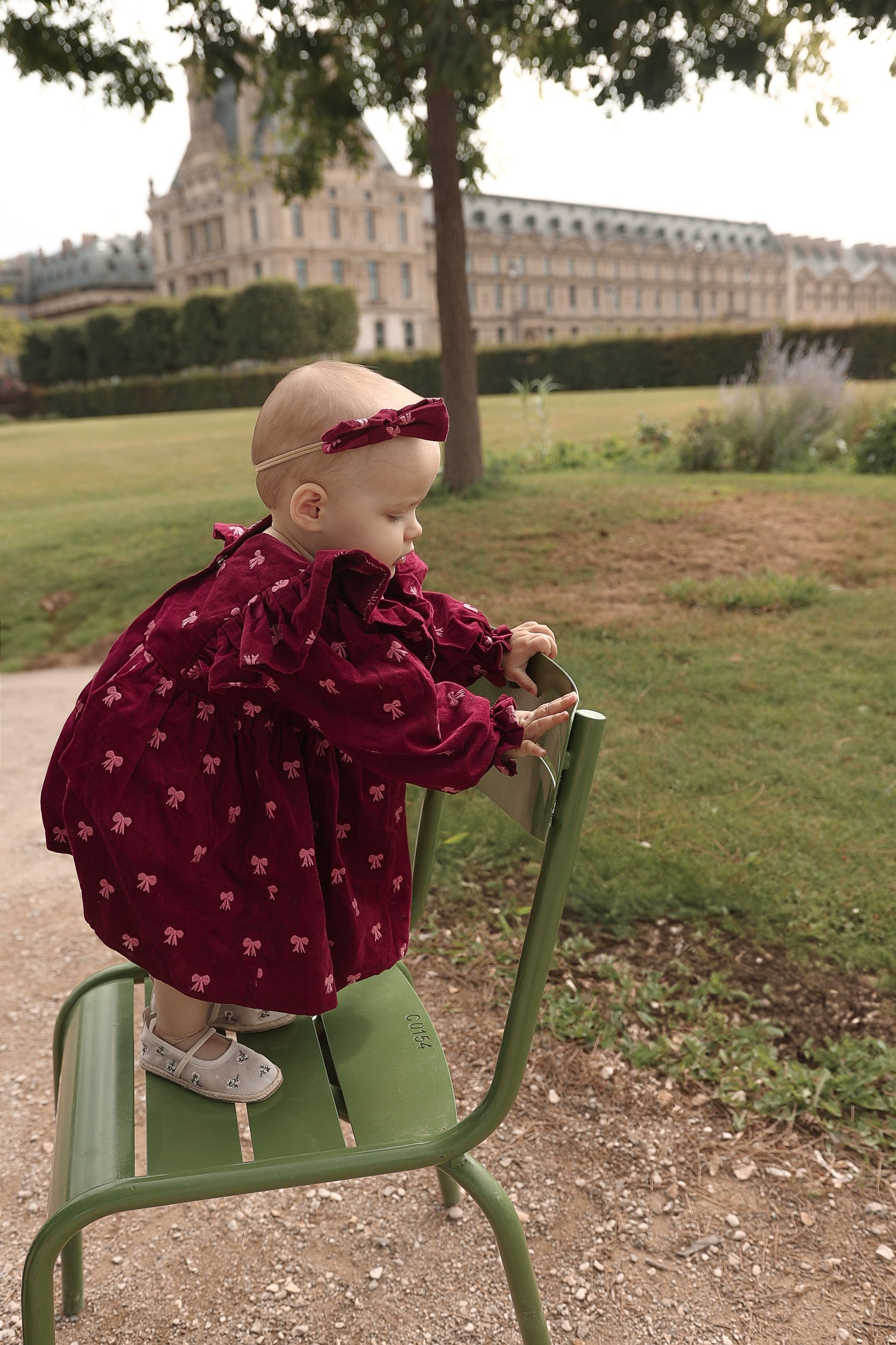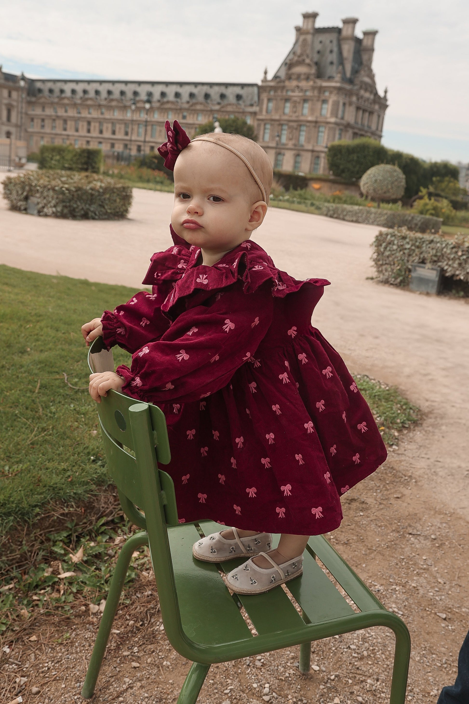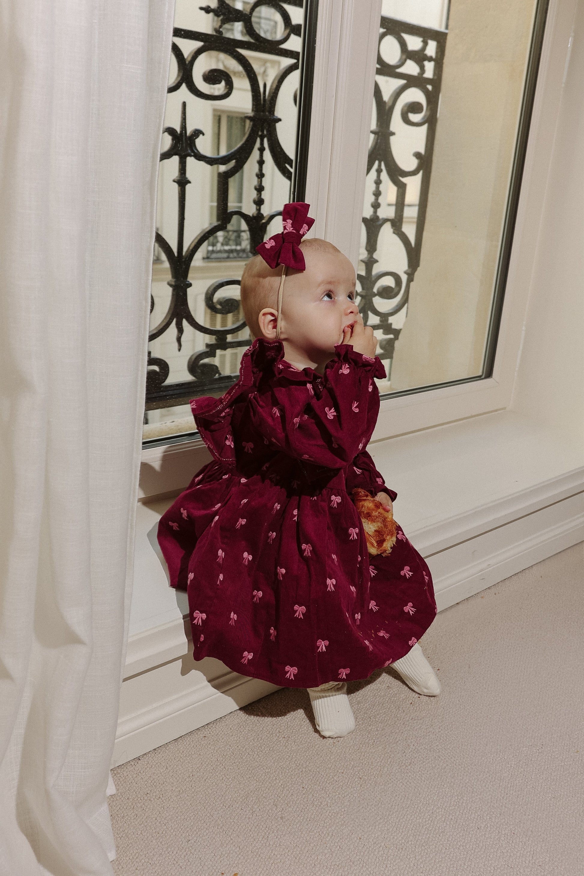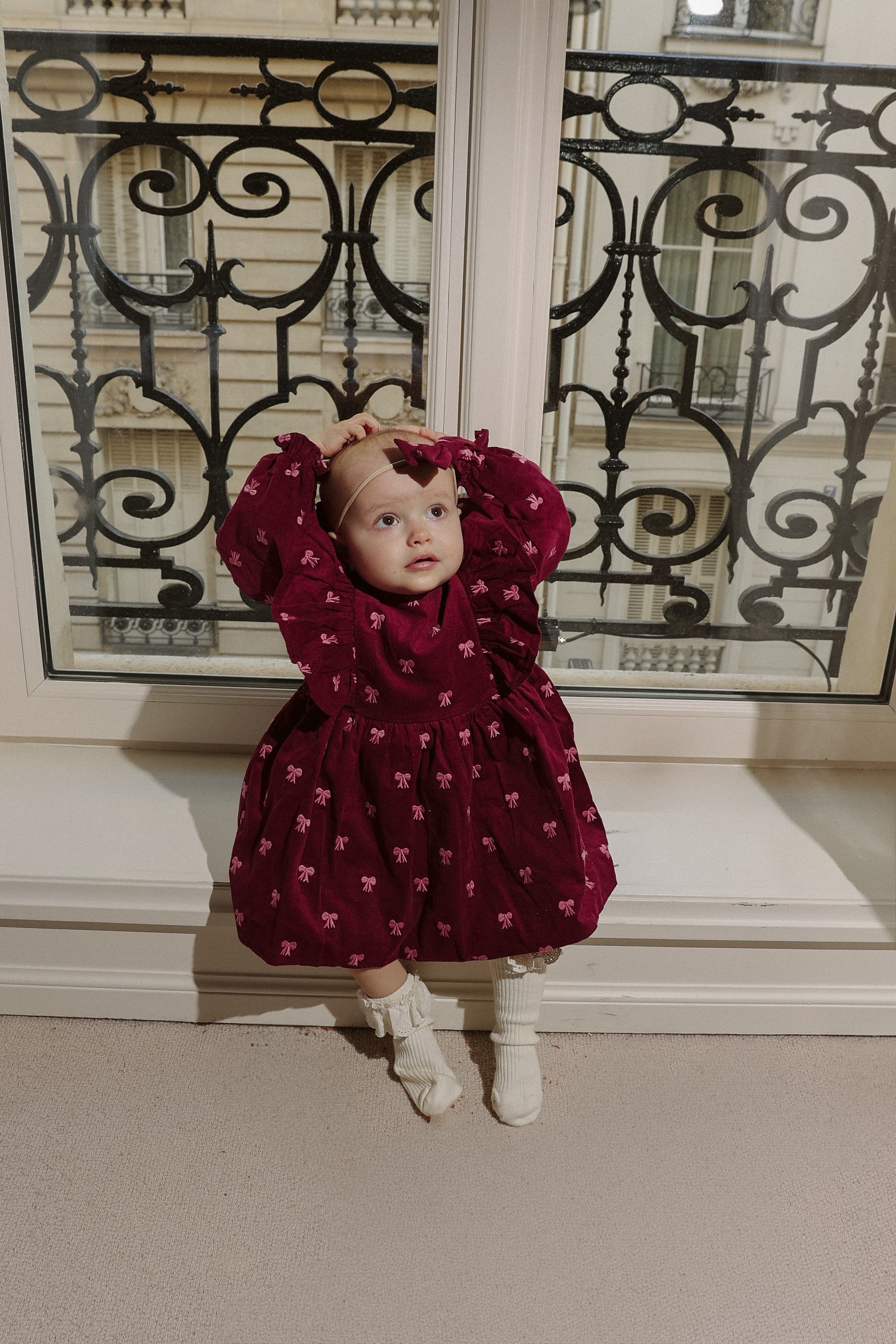 Sukienka na specjalne okazje- z bawełnianego sztruksu w kokardy.