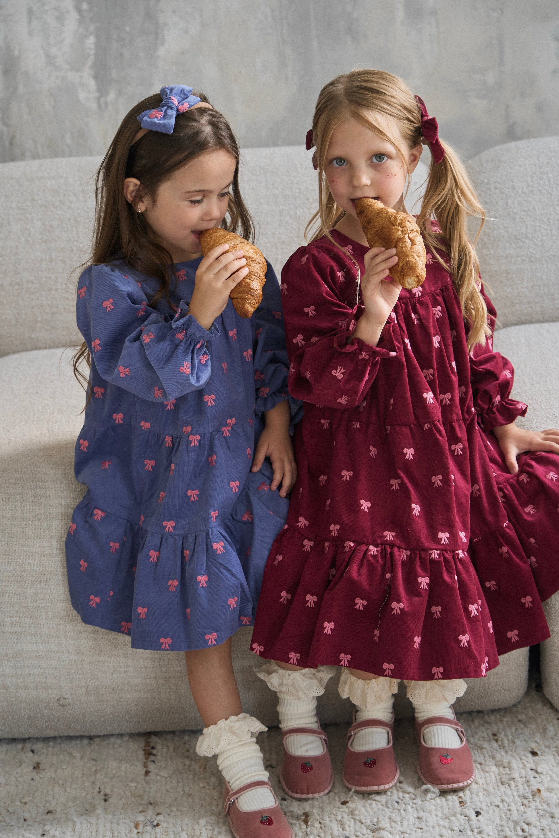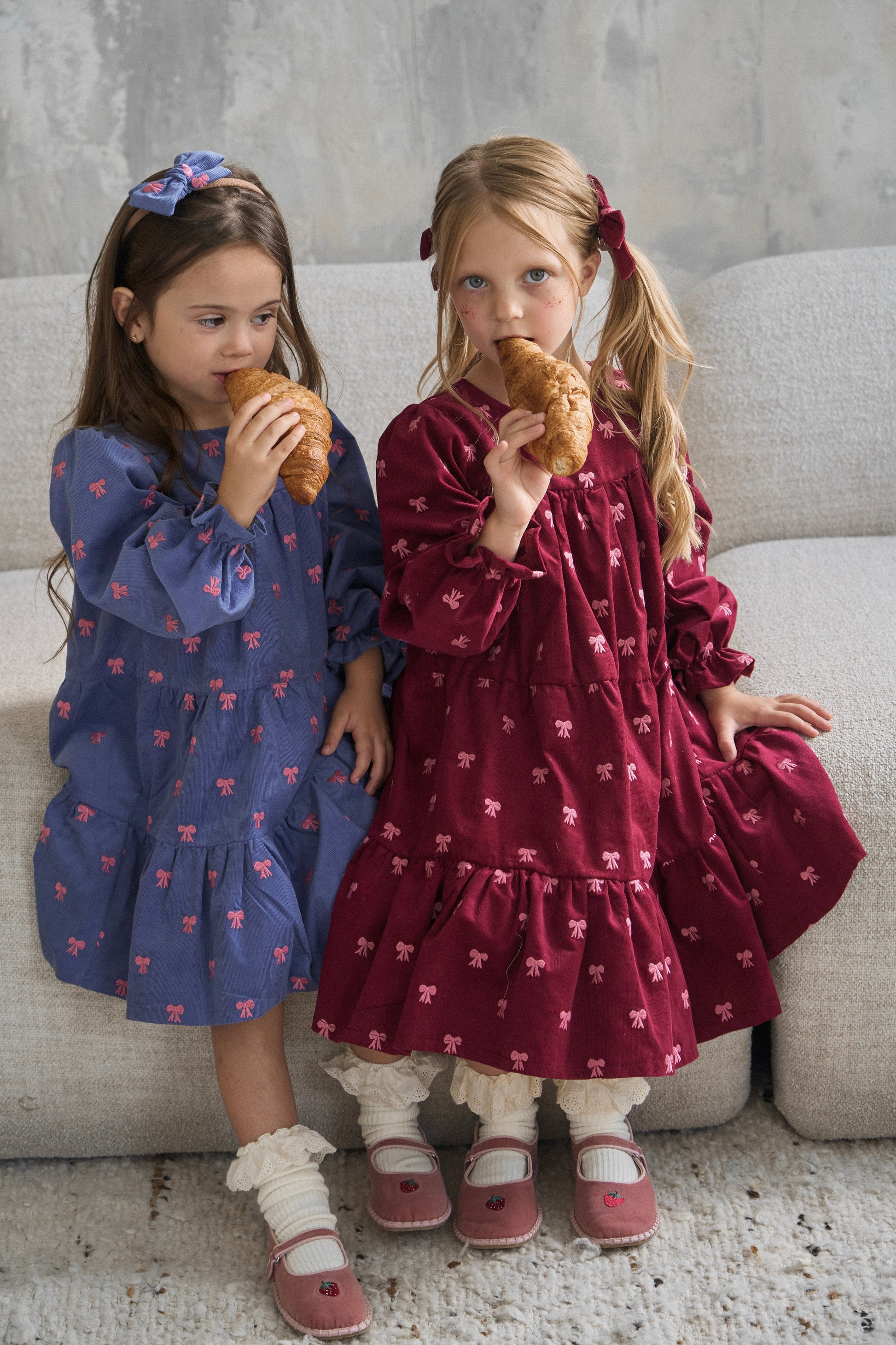 Sukienka na specjalne okazje- z bawełnianego sztruksu w kokardy.